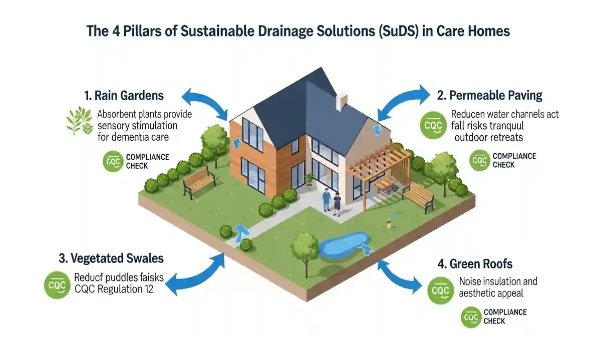 The future of sustainable drainage solutions CQC care home design is the integration of SuDS (Sustainable Drainage Systems). In Addlestone, Policy EN18 of the Local Plan encourages SuDS to manage surface water runoff, which often plagues the surrounding area.